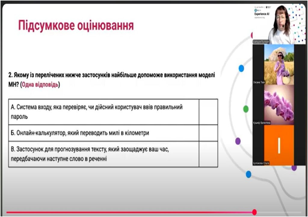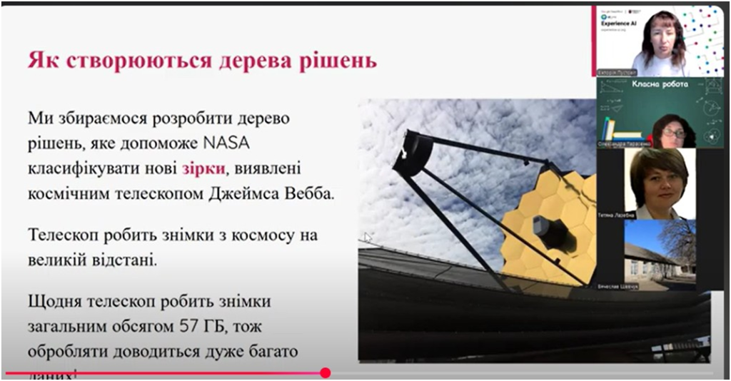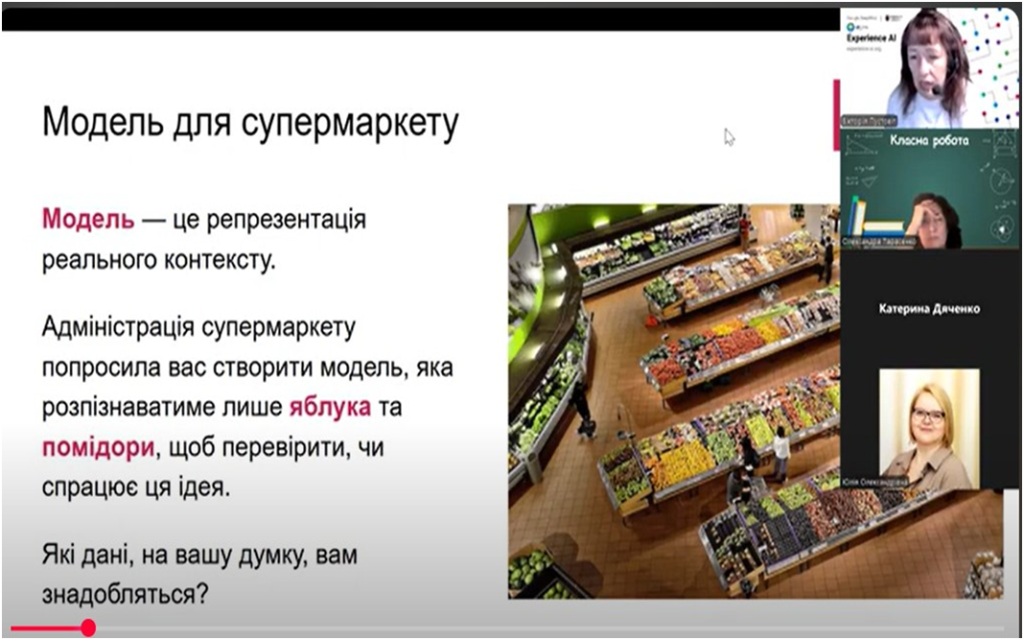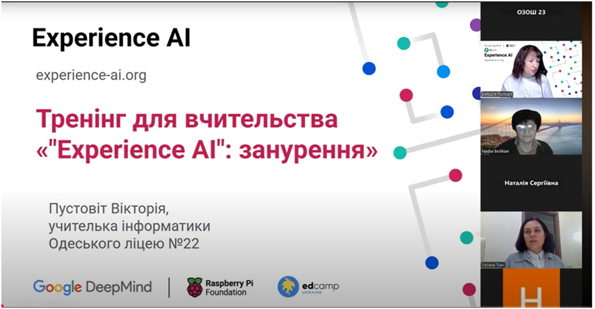 «Родзинкою» тренінгу стало знайомство з комплексом безкоштовних уроків, які містять все необхідне, щоб вчителі проводили заняття зі штучного інтелекту та машинного навчання в класах середньої школи, включно з планами уроків, слайдами, роздатковими матеріалами й відео.