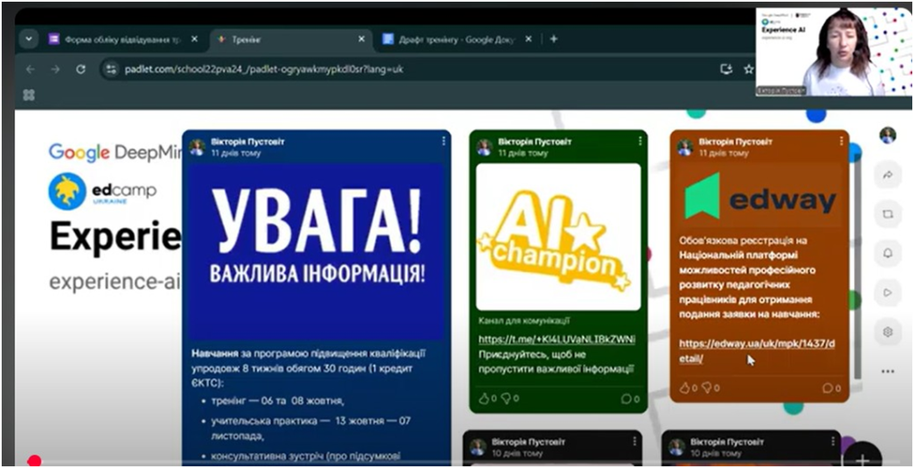 На початку тренінгу педагог розповіла про актуальність програми Experience AI, розробленої Raspberry Pi Foundation у співпраці з Google DeepMind, яка була впроваджена в понад 130 країнах світу.