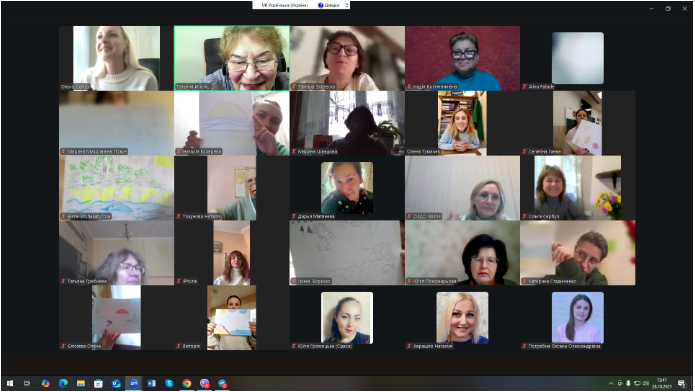 Грала заспокійлива музика, змінювалися кадри на екрані, а всі учасники заняття з задоволенням намагалися передати свій настрій у вигляді малюнків.