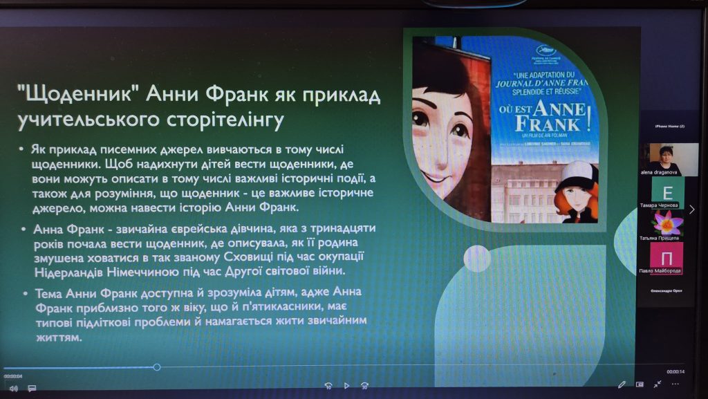 «Розповідання» історії, як зазначив педагог, є ключовим освітнім методом для підвищення інтересу та глибшого засвоєння матеріалу на уроках історії. Він презентував приклади вчительського сторітелінгу як доволі ефективного інструменту навчання, враховуючи те, що вивчення історії в 5-му класі НУШ часто становить виклик, оскільки вимагає від учнів засвоєння дат, фактів та імен.
