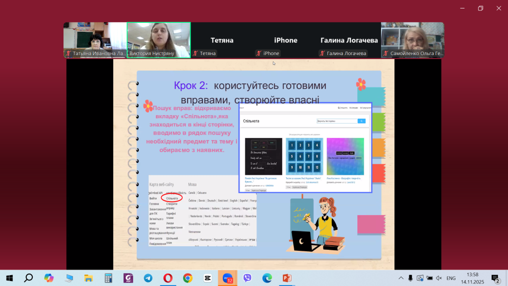 На семінарі своїм досвідом роботи з використання сучасних інтерактивних платформ у початковій школі поділилися Вікторія Ністряну(вчитель 1 категорії) та Вікторія Желебовська (вчитель – методист, призер міського та обласного етапу конкурсу «Вчитель року». У 2025 році увійшли до ТОП-50 найкращих учителів України за версією «Global Teacher Price Ukraine»), вчителі початкових класів ОДЕСЬКОГО ЛІЦЕЮ «ГАРМОНІЯ».