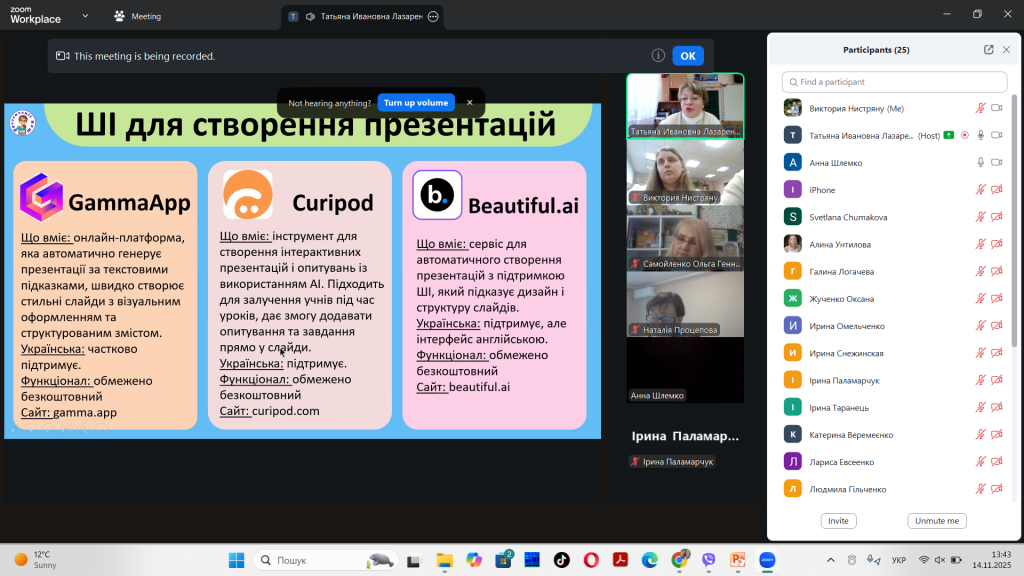З привітальним словом до вчителів звернулась консультант КУ «ОЦПРПП» Тетяна Лазаренко. Під час семінару розглянули: можливості ШІ у плануванні та підготовці уроків в початковій школі; створення сучасних матеріалів за допомогою цифрових інструментів; практичні поради щодо інтеграції технологій у щоденну роботу.