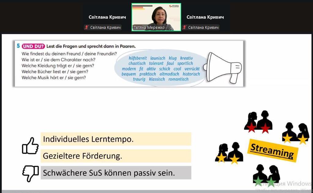 Наразі в рамках реалізації проєктів проходять цікаві зустрічі з міжнародними партнерами, на яких учасники спілкуються англійською мовою, презентують свої міста і школи, досліджують країни своїх партнерів, створюють електронні журнали, розробляють плани спільної роботи, створюють постери до 25-ї річниці Європейського дня мов, демонструють цікаві відео та мультимедійні матеріали, виконують інтелектуальні завдання.