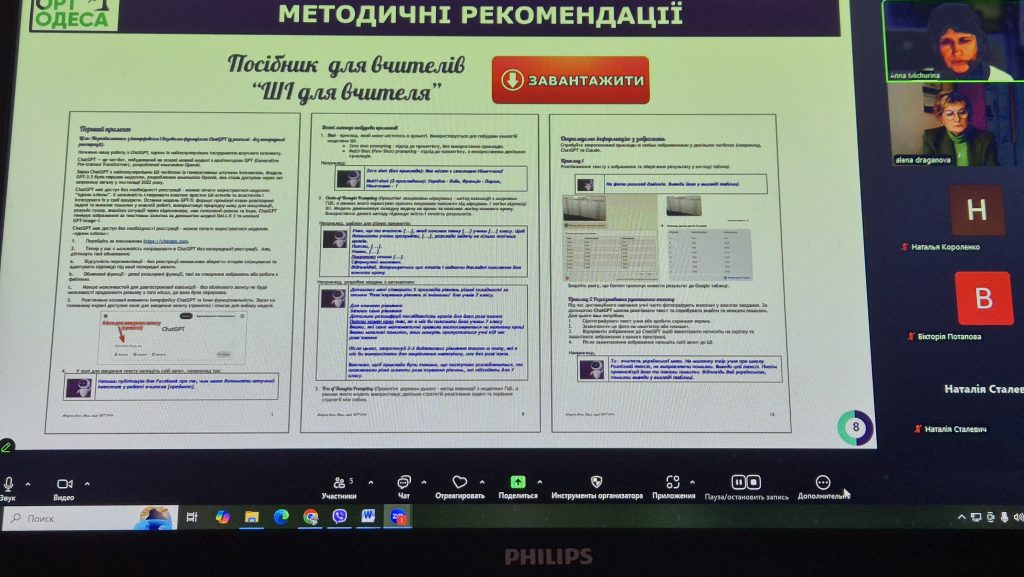 Анна Вікторівна ознайомила з практичними можливостями використання технологій штучного інтелекту (ШІ) у підготовці навчальних і дидактичних матеріалів, поділилась методиками створення навчальних матеріалів «з нуля» за допомогою ChatGPT і Gemini, розкрила принципи ефективного промпт-інжинірингу для педагогів.
