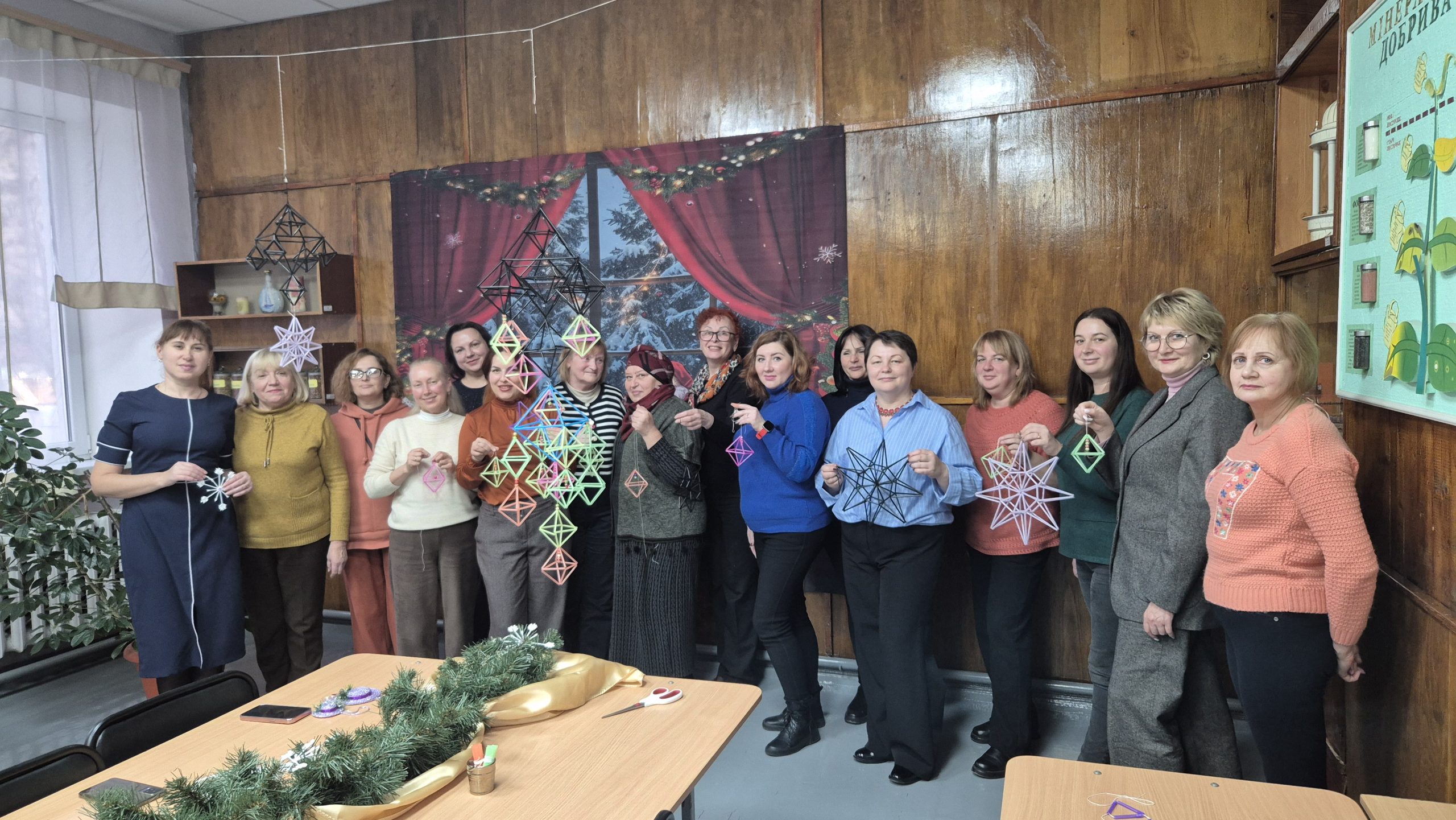 Кульмінацією заходу стало створення одного великого колективного Різдвяного павука. Кожен вчитель виготовив окремий модуль — геометричний елемент, який потім, за допомогою спільних зусиль, був інтегрований у масштабну та вражаючу конструкцію. Цей спільний проєкт наочно продемонстрував важливість співпраці та обміну досвідом у педагогічному середовищі. Створений колективний оберіг тепер прикрашатиме фойє Одеського міжшкільного ресурсного центру № 2 протягом усіх зимових свят!