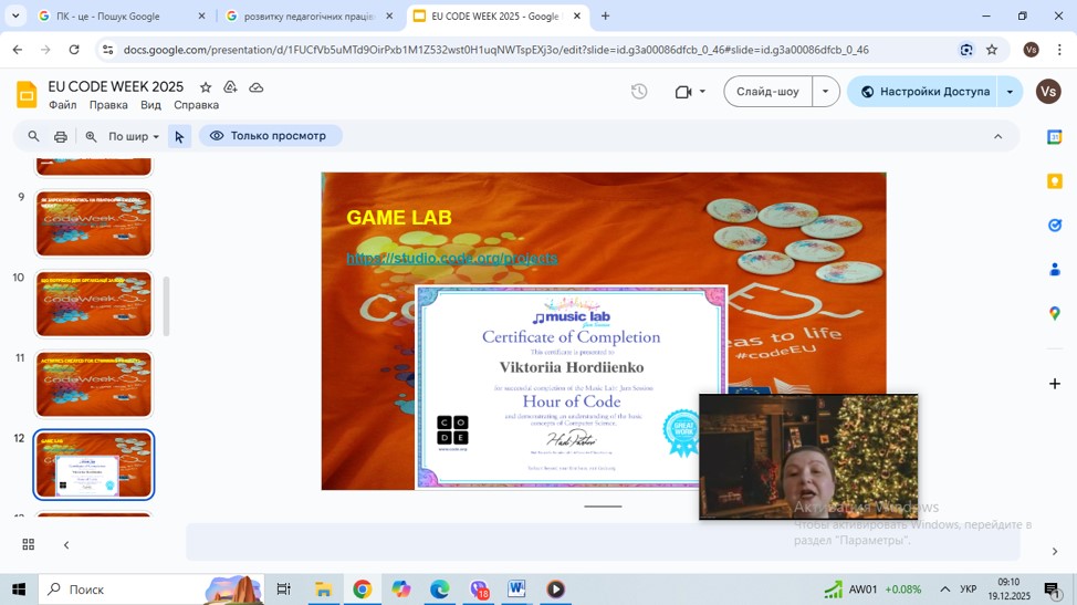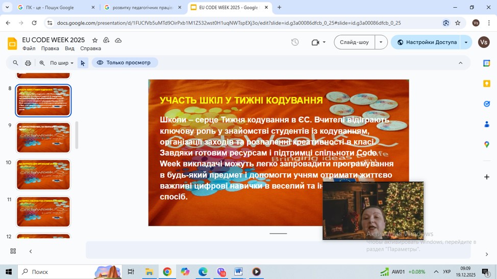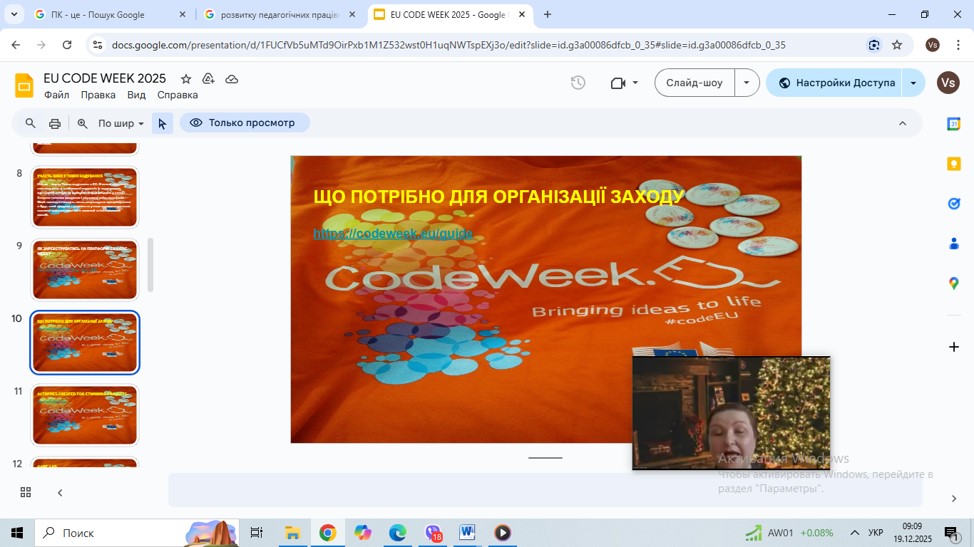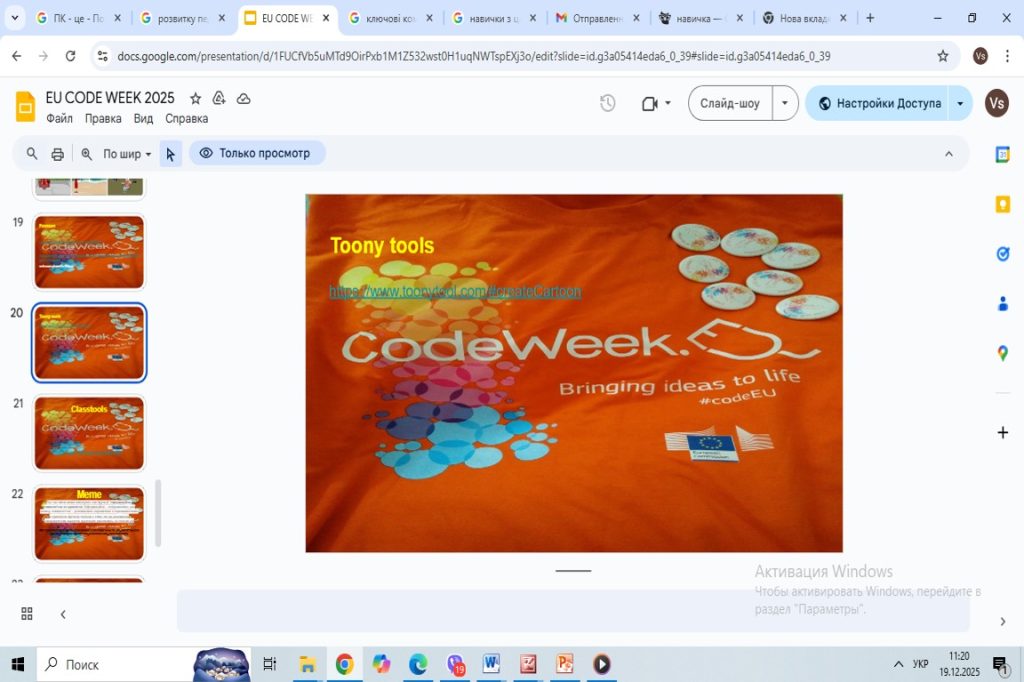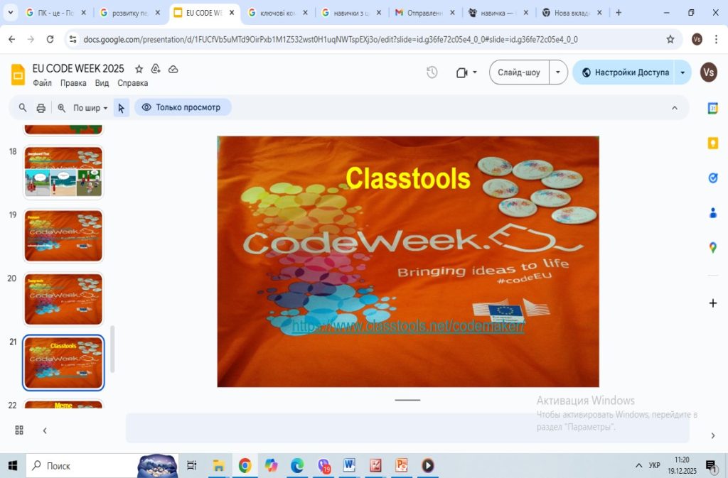 У рамках професійного розвитку педагогів 10 грудня 2025 року відбувся інтерактивний воркшоп «Цифрова компетентність як одна із значущих професійних якостей вчителя англійської мови в Новій українській школі: Тиждень кодування. Програма eTwinning»