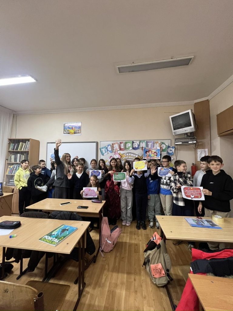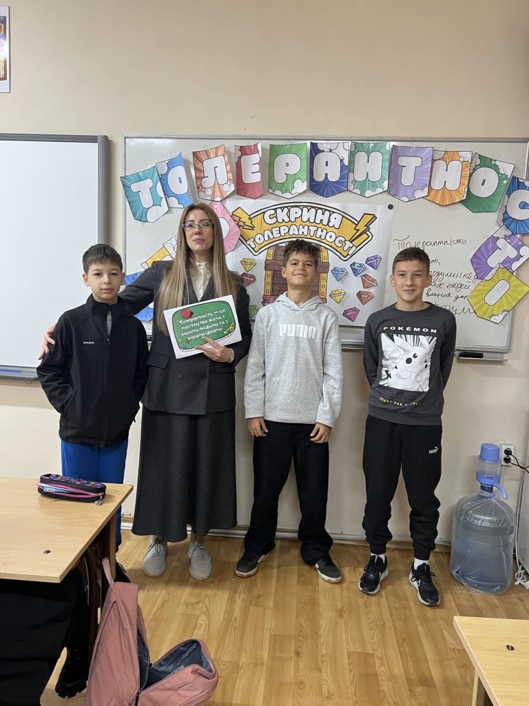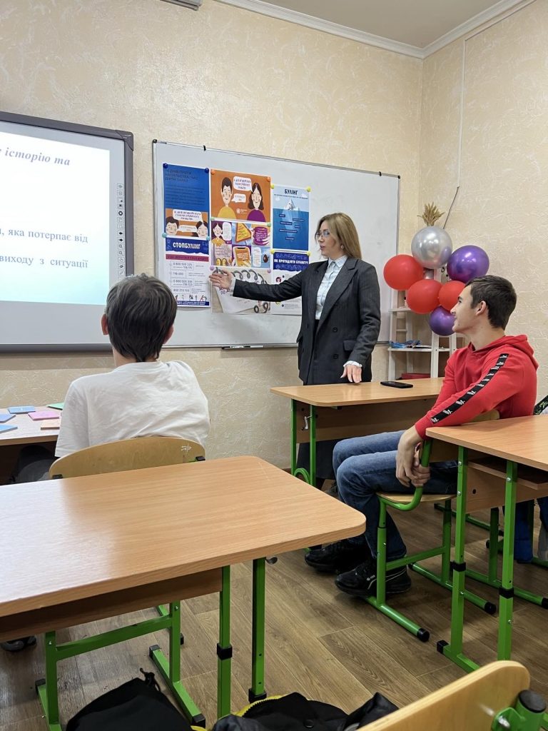 - Початкова школа (1-4 класи): Основна увага приділялася формуванню доброзичливого клімату та розпізнаванню емоцій. Було проведено заняття «Мандрівка в країну емоцій», «Країна дружби і взаємоповаги» та вправи на усвідомлення стану «Моє сонечко». Для зняття напруги активно використовувалися методики Світлани Ройз, зокрема гра «ОБІЙМАНЦІ», дихальна гімнастика та анімаційний серіал «Корисні підказки» про емпатію. Уроки доповнювалися ляльковим театром та використанням розмальовок «Іскорки суперсил».