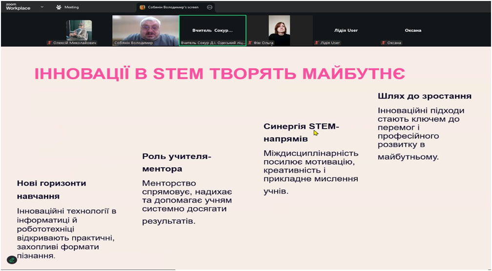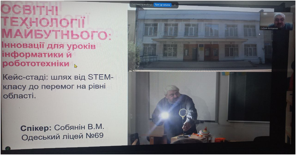 Спікери Собянін Володимир Миколайович, вчитель інформатики, Солом’яний Олексій Миколайович, вчитель робототехніки ОДЕСЬКОГО ЛІЦЕЮ № 69 ОДЕСЬКОЇ МІСЬКОЇ РАДИ звернули особливу увагу на те, що сьогоднішня освіта динамічно змінюється, і саме предмети інформатики та робототехніки перебувають у центрі цих змін. Вони не лише формують цифрову грамотність учнів, а й розвивають логічне мислення, креативність, уміння працювати в команді та знаходити нестандартні рішення-ті компетентності, які є визначальними для майбутнього покоління.