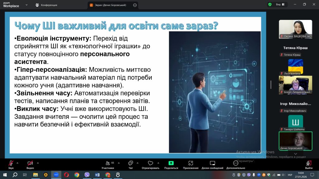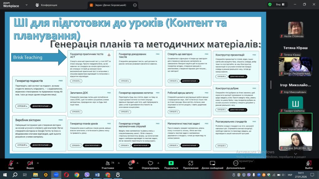 27 січня 2026 року на платформі ZOOM відбувся вебінар для працівників закладів освіти міста Одеси «Штучний інтелект у роботі вчителя: практичні інструменти та приклади використання»