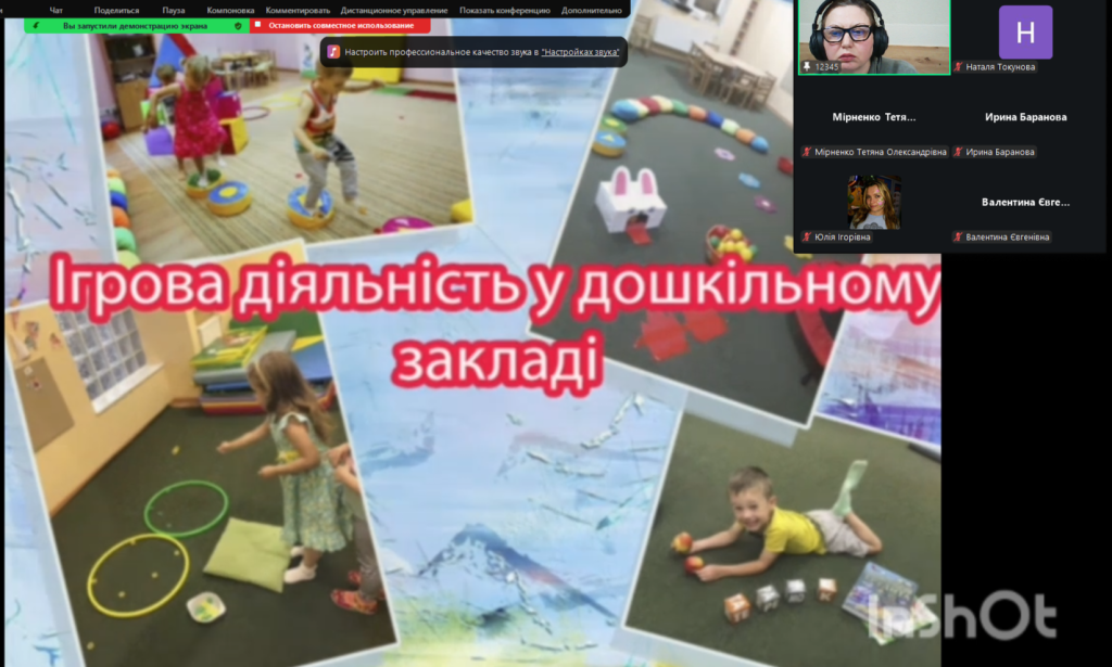 Розпочала зустріч Наталія Шайхутдінова розповіддю про те, що гра є провідною діяльністю дитини дошкільного віку, і всі чинні освітні програми в Україні, наприклад, «Дитина», «Впевнений старт», «Українське дошкілля» та інші, що ґрунтуються на Базовому компоненті дошкільної освіти, розглядають її як основний засіб розвитку, виховання та навчання.