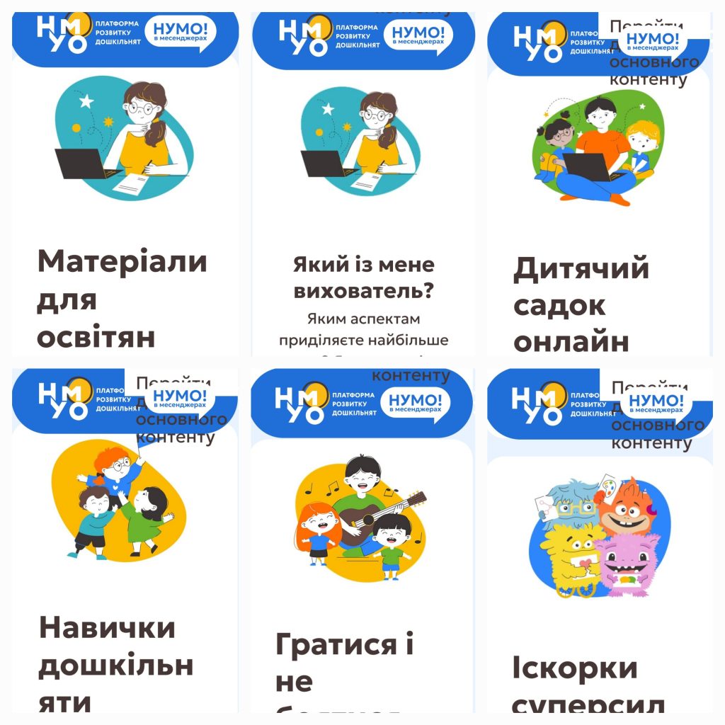 - НУМО! в месенджерах: спільнота для вихователів у Viber, НУМО!бот для батьків https://numo.mon.gov.ua/messengers