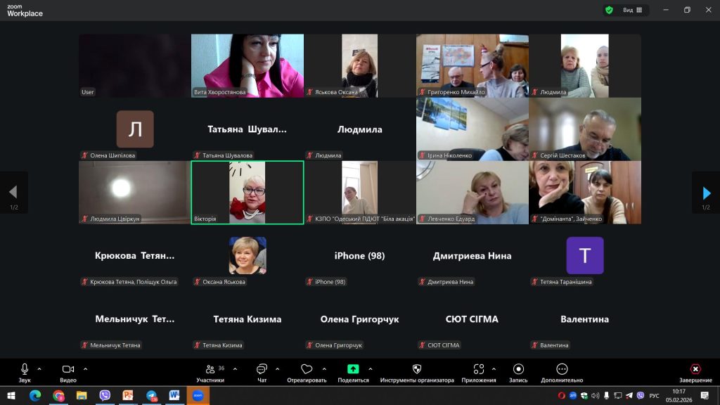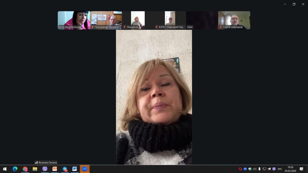 05.02.2026 у форматі онлайн відбулася вебінар-нарада «Нові практики національно-патріотичного виховання у закладах позашкільної освіти», в якій взяли участь 45 заступників директорів з ВР, методистів закладів позашкільної освіти міста Одеси. Національно-патріотичне виховання учнівської молоді є провідним напрямком діяльності закладів позашкільної освіти та важливим чинником формування національної свідомості. У реаліях сучасності саме заклади позашкільної освіти надають учням додаткові знання, формують вміння і навички за інтересами, задовольняють потреби учнів у творчій самореалізації, сприяють формуванню особистості майбутнього громадянина. Національно-патріотичне виховання у закладах позашкільної освіти – це динамічний процес, що потребує постійного оновлення форм і методів. Саме нові практики дозволяють зробити його змістовним, дієвим і близьким до сучасної дитини.