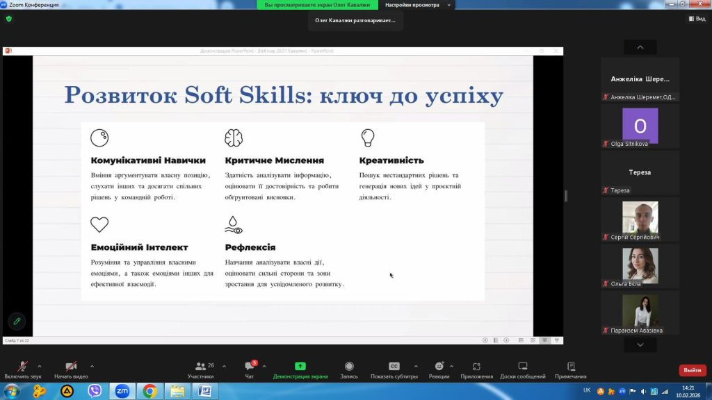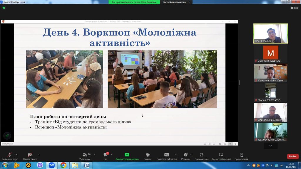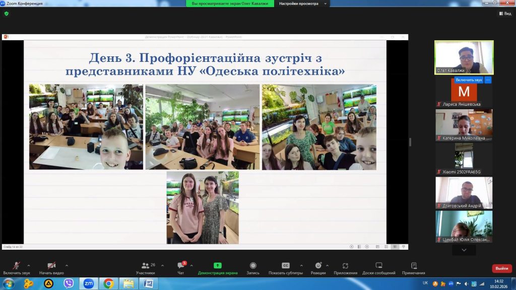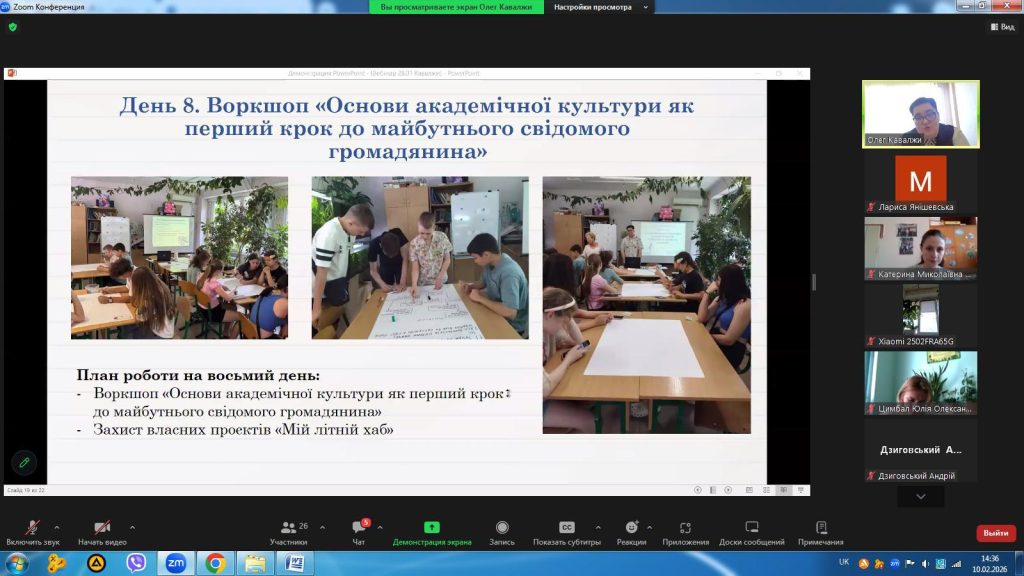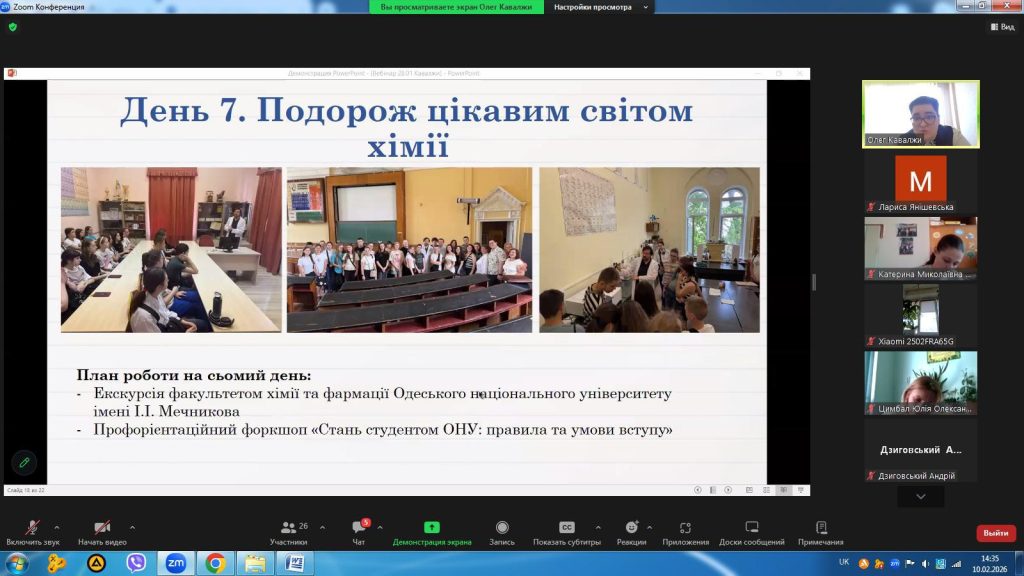 10 лютого 2026 року відповідно до плану роботи КУ «Одеський центр професійного розвитку педагогічних працівників» на 2026 рік на платформі Zoom відбувся вебінар для вчителів-предметників та педагогів-організаторів на тему «Літня лідерсько-наукова школа як освітня синергія та інноваційна форма виховної роботи».