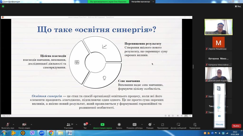Учасники вебінару ознайомилися з підходами до інтеграції освіти, виховання і практичної діяльності в єдиний синергійний освітній простір.