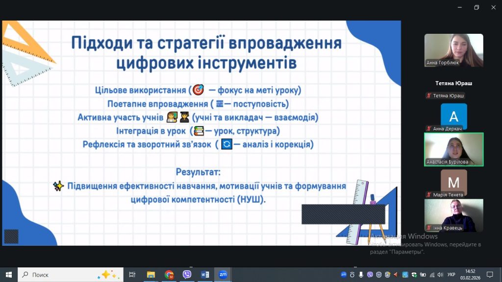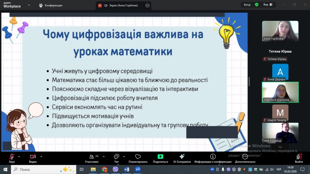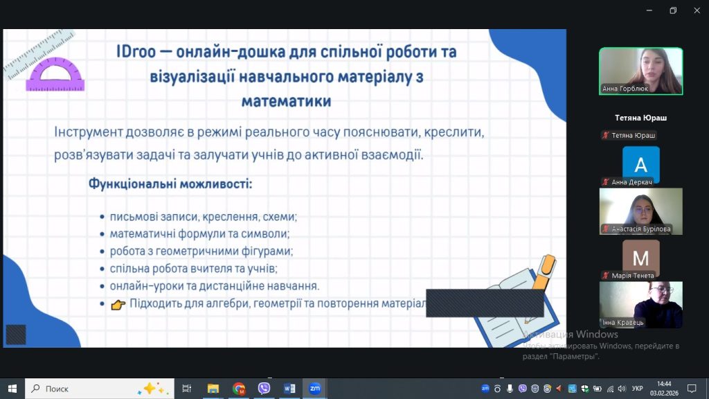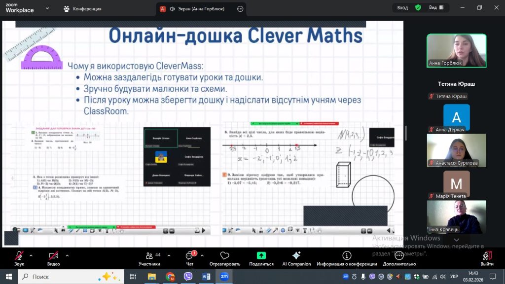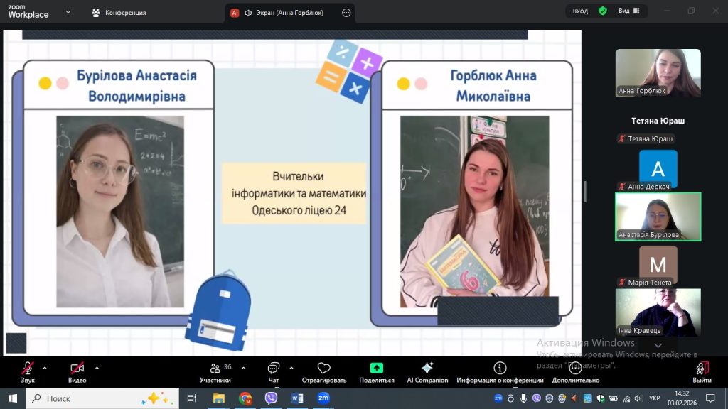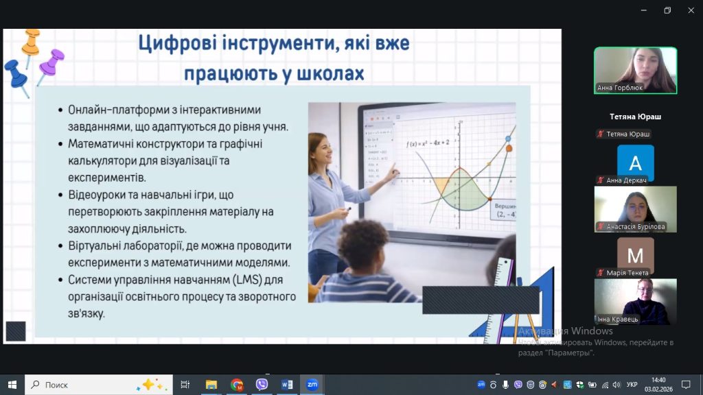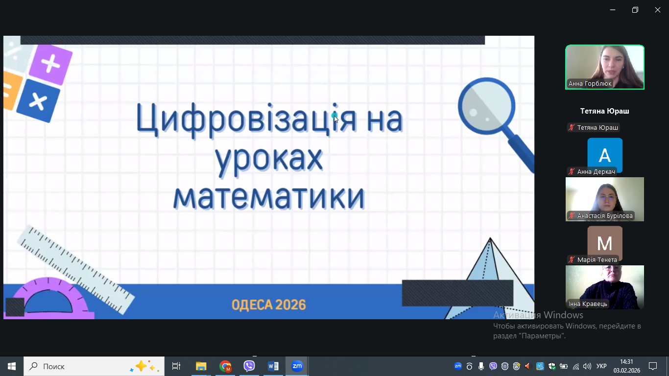 03 лютого 2026 року відбувся вебінар з «Цифровізація на уроках математики», в якому брали участь вчителі математики закладів загальної середньої освіти комунальної власності територіальної громади м. Одеси.