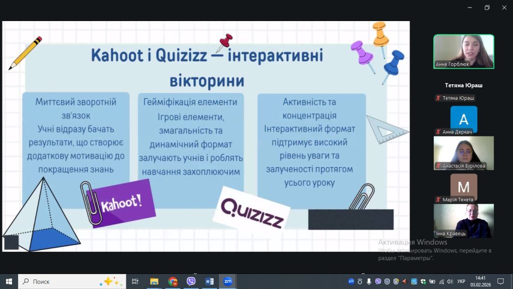 - Quizizz та Wordwall: Представлені як ефективні засоби для миттєвої перевірки знань та проведення математичних вікторин, що перетворюють рутинне опитування на цікаве змагання.