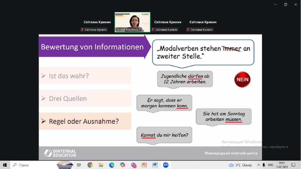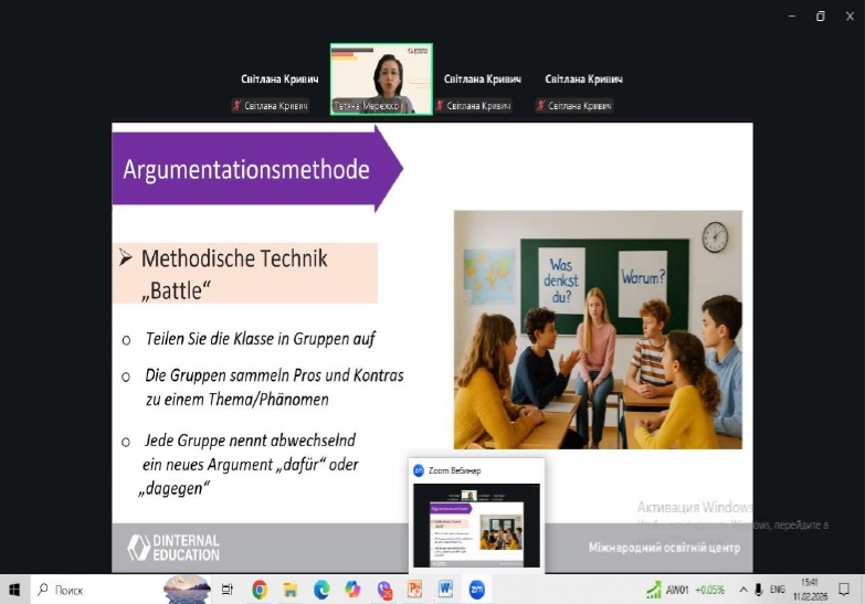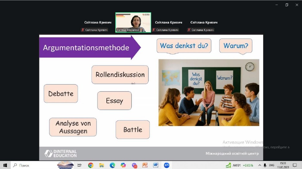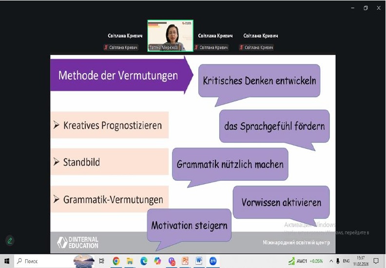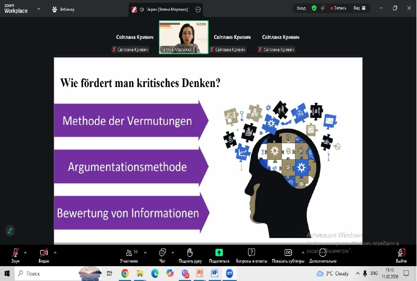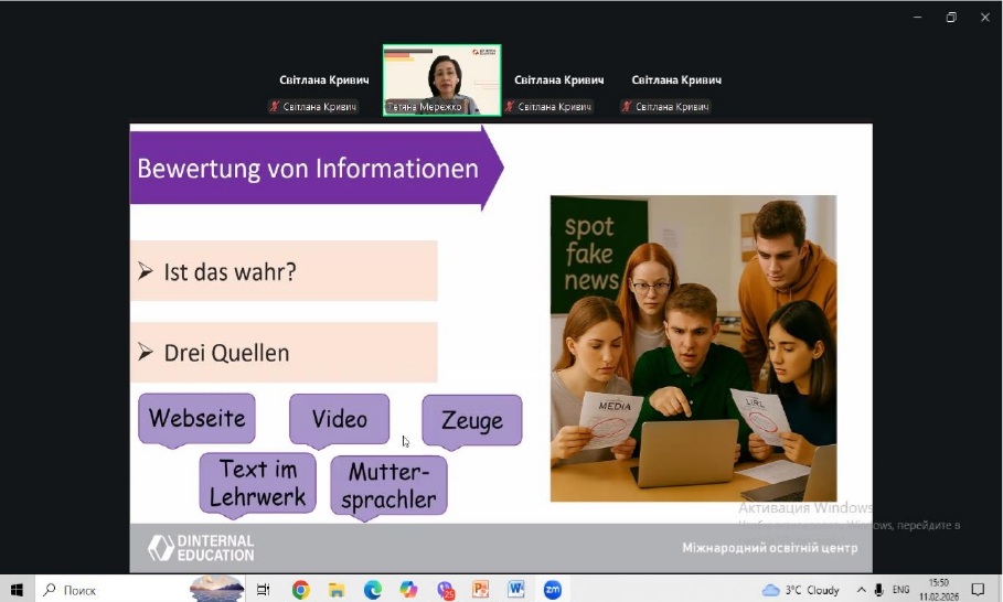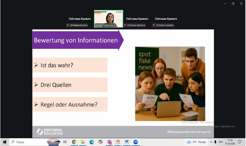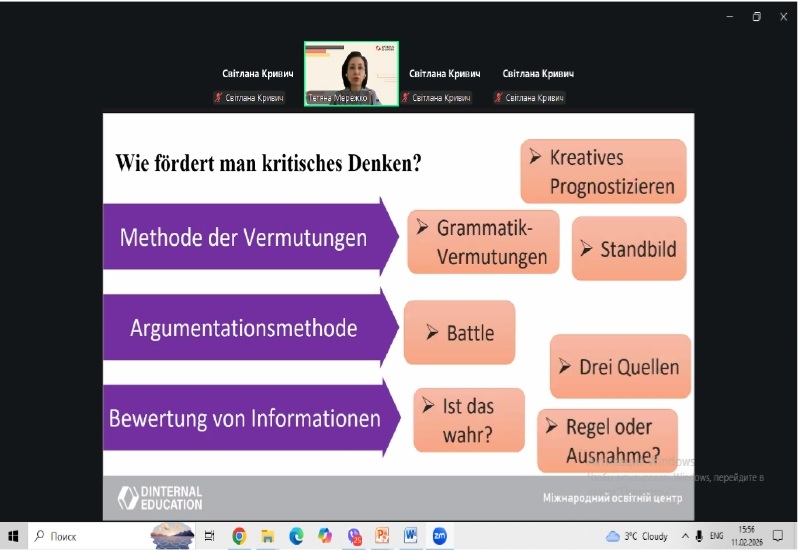 У рамках професійного розвитку педагогічних працівників 11 лютого 2026 року відбувся методичний воркшоп для вчителів німецької мови за темою «Розвиваємо критичне мислення на уроках німецької мови: методи, техніки, перспективи. Kritisches Denken im Deutschunterricht: Methoden, Techniken, Perspektive»