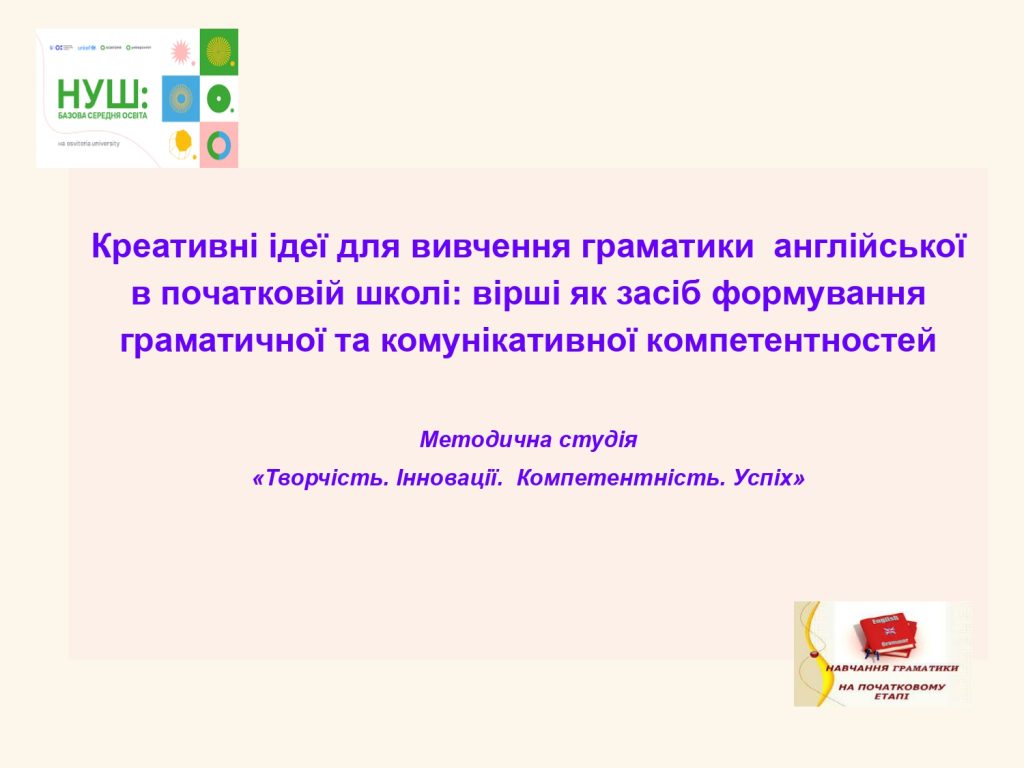 Креативні ідеї для вивчення граматики англійської в початковій школі: вірші як засіб формування граматичної та комунікативної компетентностей.