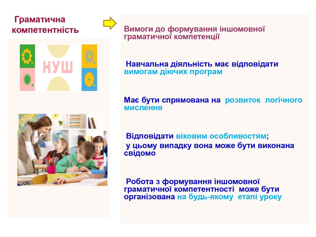 Етап актуалізації знань щодо формування граматичної та іншомовної комунікативної компетентностей у початковій школі, який організувала консультантка Комунальної установи «Одеський центр професйного розвитку педагогічних працівників Світдана Кривич, дозволив їм зосередитись на таких важливих питаннях: стадії засвоєння граматики, вибір раціонального способу опрацювання граматичних структур та дидактичних засобів, врахування психофізвологічних особливостей дітей тощо.