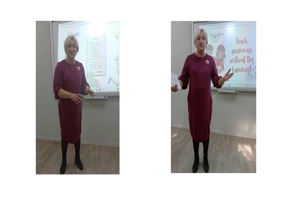 Майстер-клас за темою «Використання віршів для ефективного вивчення граматики: навчаємо креативно і цікаво» провела для молодих колег вчителька англійської мови початкової школи № 119 Оксана Чубрік. Педагогиня поділилась власним досвідом роботи щодо ефективного використання віршів під час вивчення граматики на уроках англійської мови в початковій школі: як підбирати вірші, як працювати з ними для введення, закріплення і творчого відтворення граматичного матеріалу; на яких етапах уроку застосовувати; які методи, форми роботи та види тренувальних вправ передбачати.