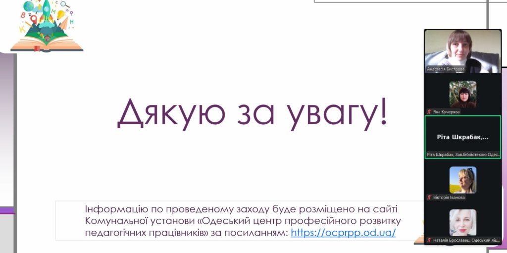 Комунальна установа «Одеський центр професійного розвитку педагогічних працівників» і надалі продовжуватиме підтримувати педагогічну спільноту міста, надаючи актуальні консультації та організовуючи вебінари з ключових питань освітнього процесу.