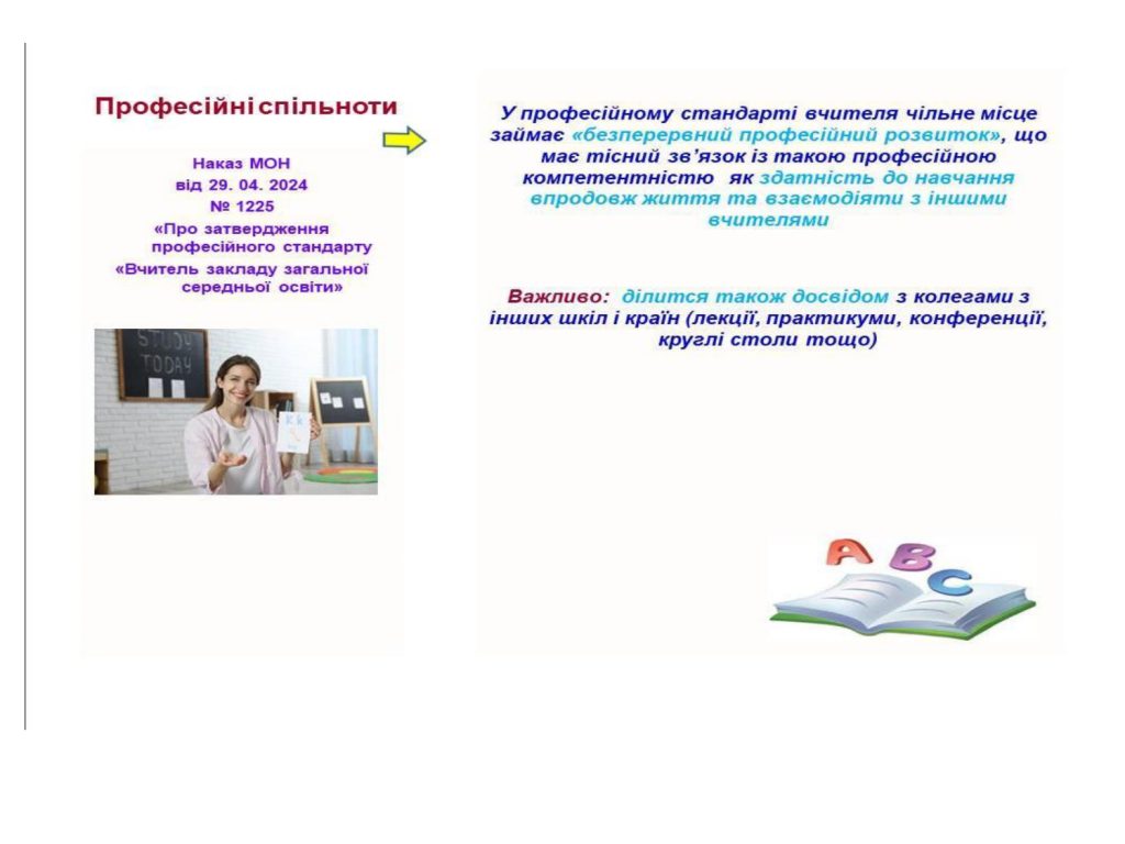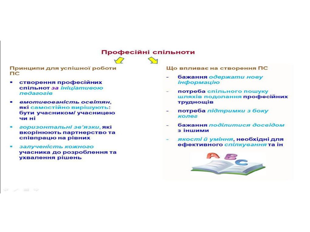 На початку зустрічі було окреслено актуальні питання щодо формування професійних спільнот освітян відповідно до Професійного стандарту вчителя та сучасних вимог, а саме: місія та візія професійної спільноти, принципи та правила роботи, планування професійного розвитку тощо.