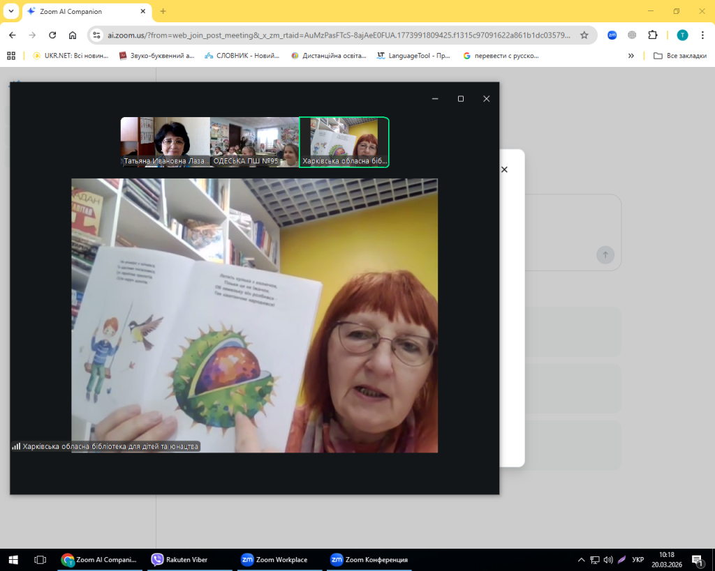 20 березня 2026 року в місті Одесі відбулася онлайн літературна зустріч із харківською дитячою поетесою Надією Богус, організована Комунальною установою «Одеський центр професійного розвитку педагогічних працівників».