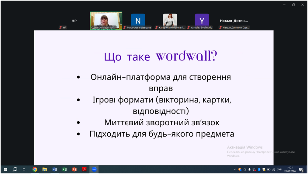 Основним завданням було ознайомлення учасників зі стратегіями використання платформ Wordwall, LearningApps, PhET, GeoGebra та Desmos у поєднанні з груповою динамікою. Педагоги разом пройшли шлях від технічного запуску сесійних залів до реалізації практичних вправ у них.