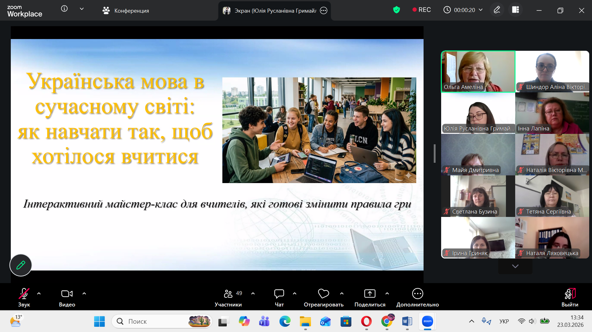 23 березня 2026 року в межах міського освітнього проєкту «Філологи Одеси в сучасній освіті» пройшов вебінар для вчителів української мови та літератури, спікерами якого були Гримайло Юлія Русланівна та Молочна Наталія Вікторівна.