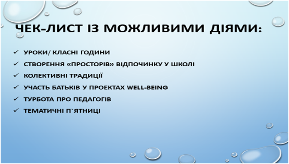 Спікери заходу Паращук Оксана Валеріївна та Ясінська Ірина Леонтіївна вчителі початкових класів ОДЕСЬКОГО ЛІЦЕЮ № 60 ОДЕСЬКОЇ МІСЬКОЇ РАДИ акцентували увагу на те, що закладах освіти України набуває актуальності впровадження концепції well-being як ключового елементу сучасного освітнього процесу. Вони відповіли на питання як створити безпечне, підтримувальне середовище та як сприяти психологічному, емоційному й соціальному благополуччю учнів. Сучасні діти дедалі частіше стикаються зі стресом і тривожністю, тому школа має стати простором не лише для навчання, а й для підтримки. Концепція well-being передбачає гармонійний розвиток особистості, формування відчуття безпеки та розвиток емоційного інтелекту.