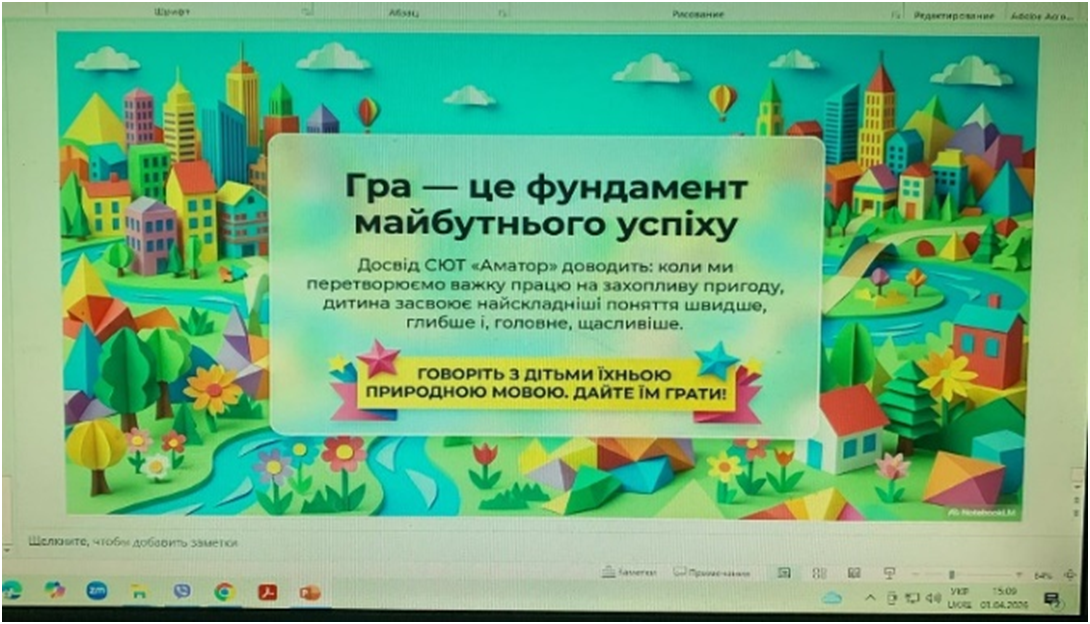 01 квітня 2026 року відбувся педагогічний вебінар «Гра як фундамент навчання: Від дитячої розваги до стелс-навчання».