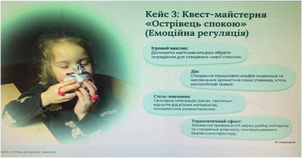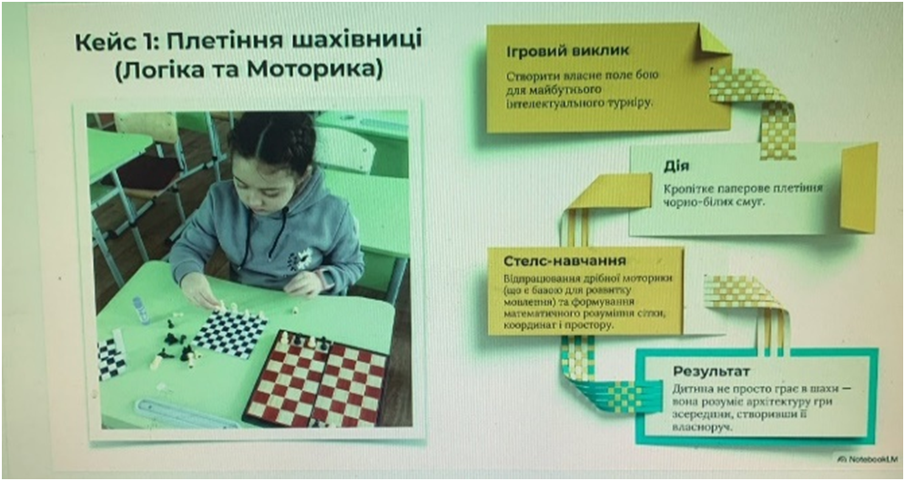 - Матриця трансформації: демонстрація того, як звичайна гра перетворюється на інтелектуальний розвиток (кейс «Шахівниця»), соціальну відповідальність (кейс «Безпечне місто») та емоційну рівновагу (кейс «Острівець спокою»).