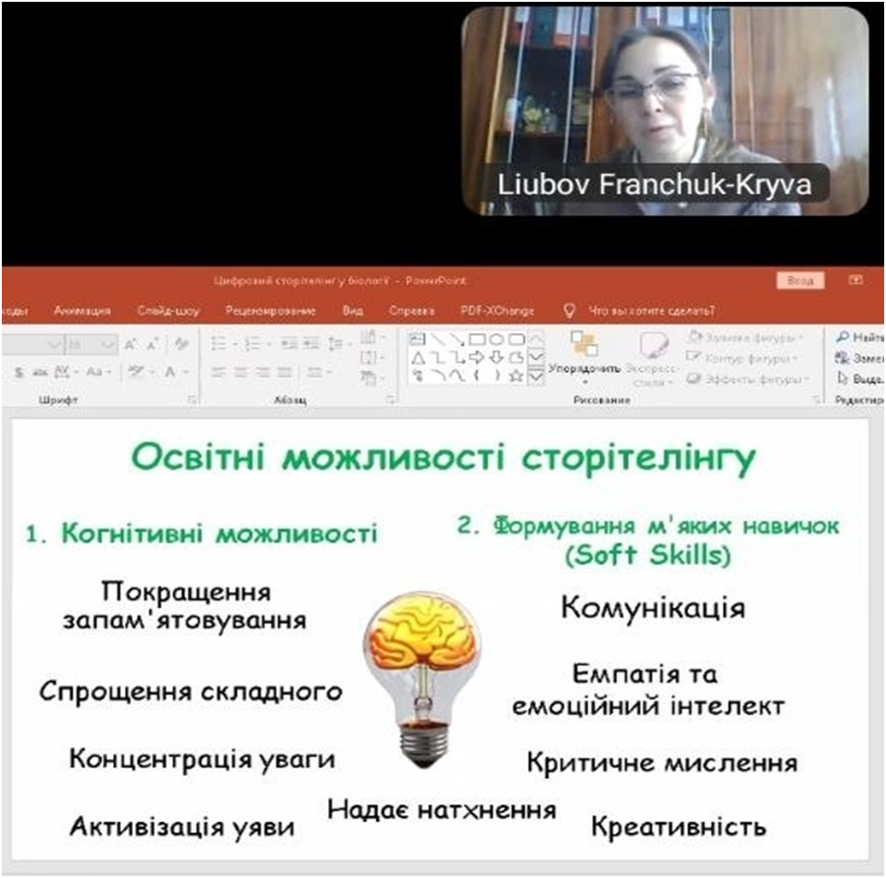Особливо підкреслено, що використання сторітелінгу не лише полегшує засвоєння складних біологічних термінів чи правил, а й сприяє розвитку критичного мислення, креативності, емпатії та медіаграмотності