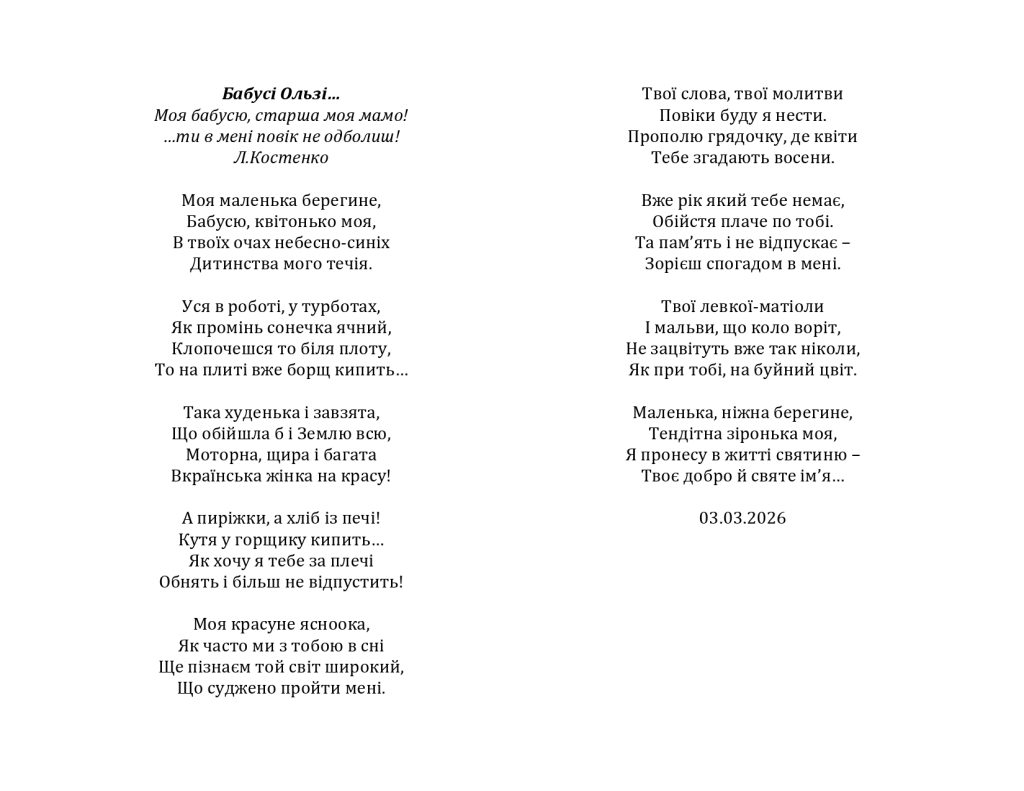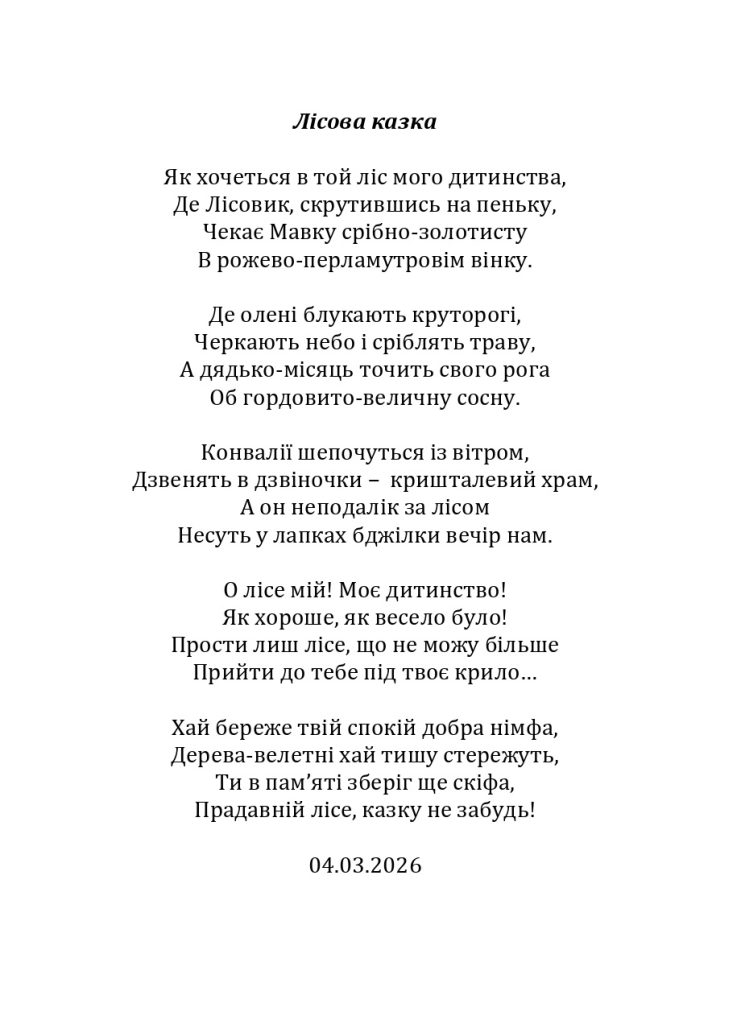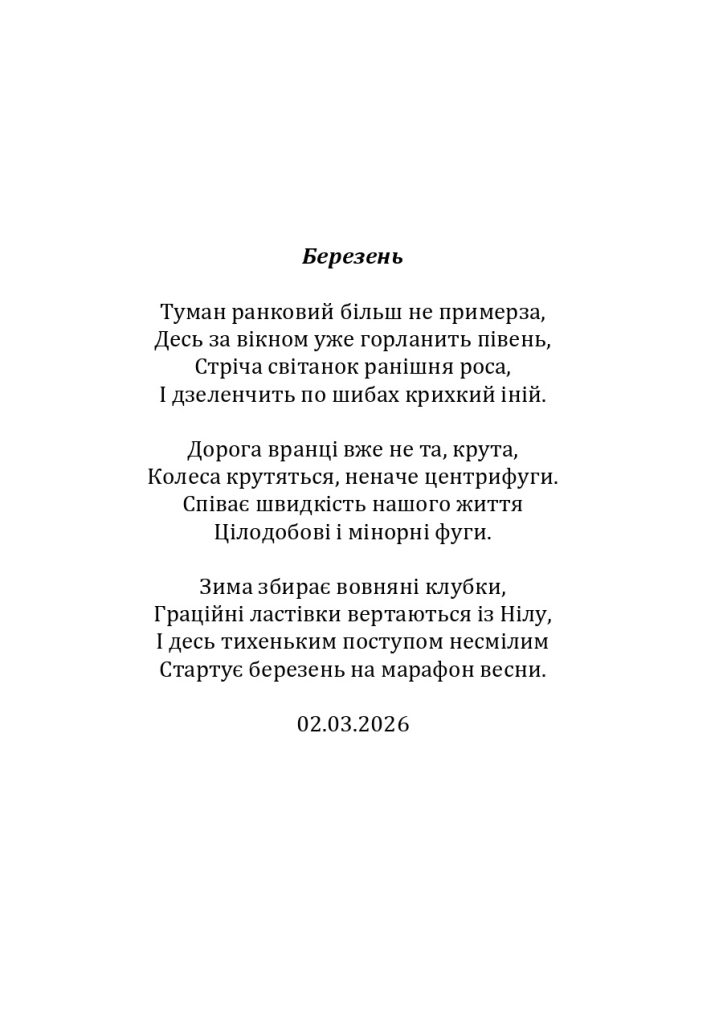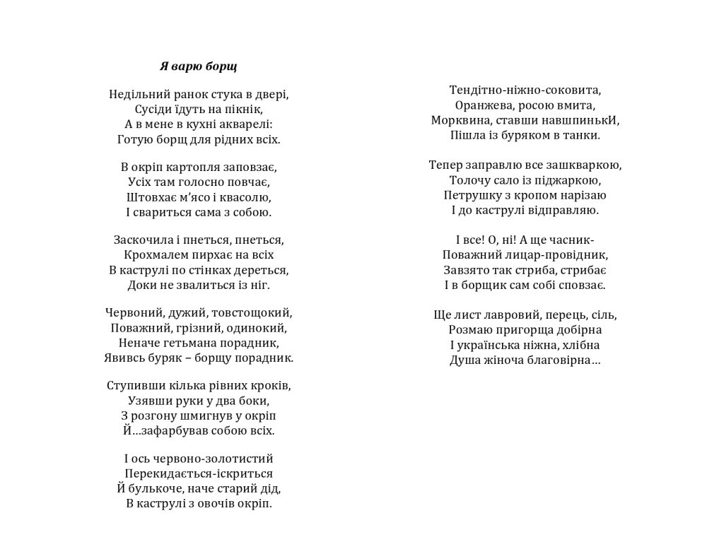 Мрій, живи і радій кожній пташці весни І краплистим дощем обернися у літо, А душею розквітни всім на зло восени, Ну, а взимку трусни сніговію привітом