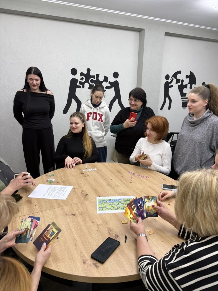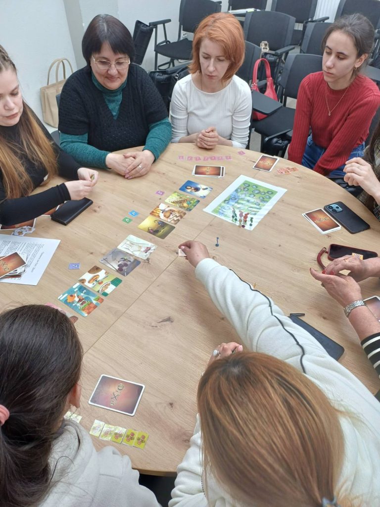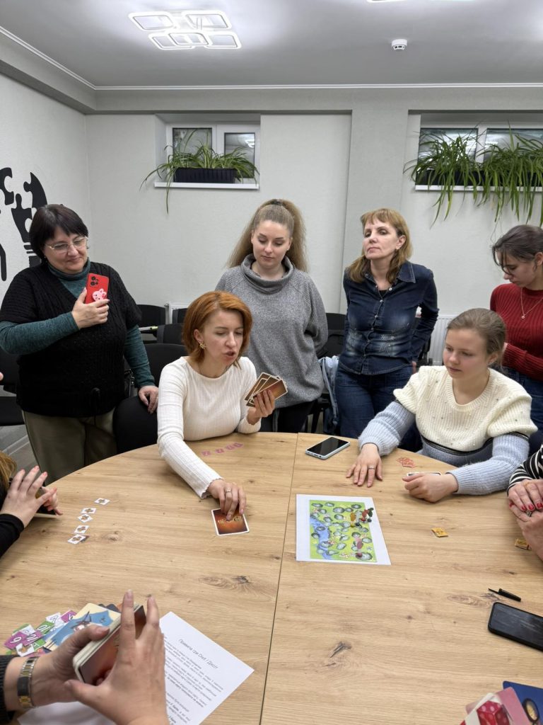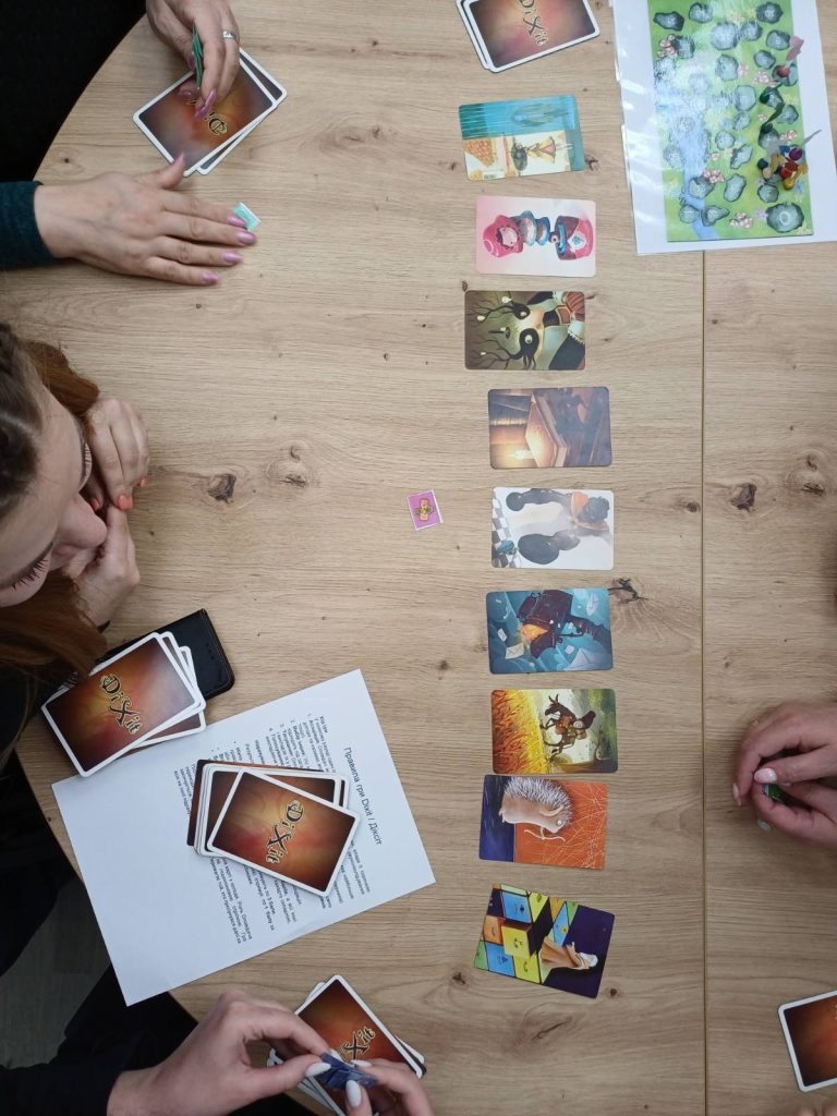 Центральною частиною практичного заняття стало знайомство з методикою використання популярної гри «Діксіт» (Dixit) у професійній діяльності. Учасники засідання на власному досвіді переконалися, як метафоричні асоціативні зображення допомагають розкрити творчий потенціал підлітків, стимулювати самовираження та вербалізацію почуттів, виявляти приховані тривожні стани через проекцію на ігрові образи, а також формувати навички невербальної комунікації та емпатії. Під час зустрічі фахівці не лише теоретично розібрали психологічні механізми гри, а й змогли змоделювати конкретні професійні ситуації, з якими вони стикаються у щоденній роботі в закладах освіти.