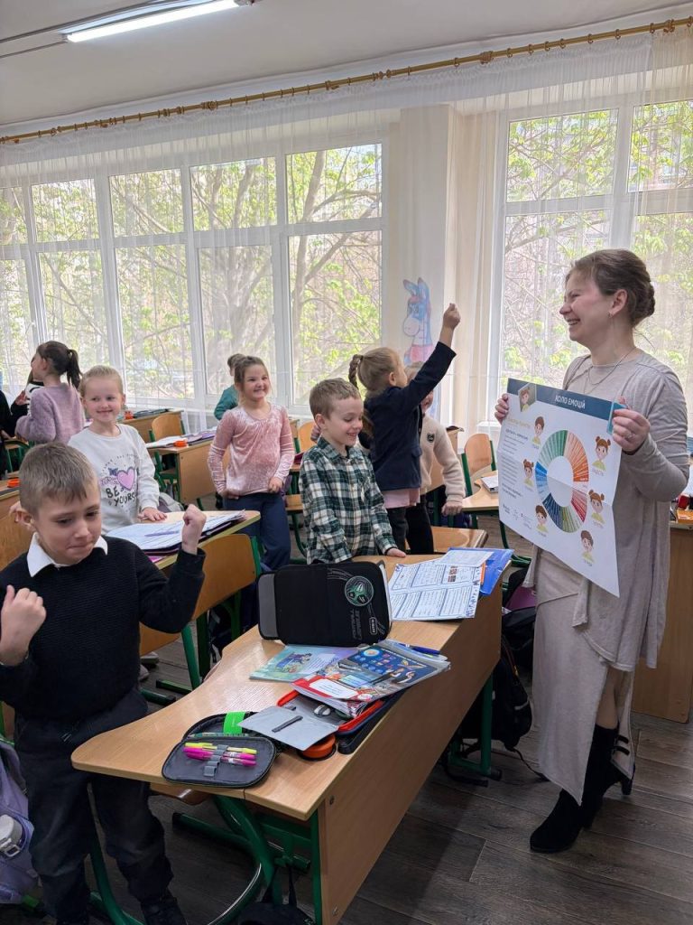 Індивідуальне та групове консультування для учнів (техніки самозаспокоєння та стабілізації), закріплення дихальних вправ під час перебування в укриттях під час повітряних тривог. Музичні творчі перерви, свято танцю та мрії класу, конкурс малюнків «Зона небезпеки», воркшоп «Ментальне дитяче кафе».