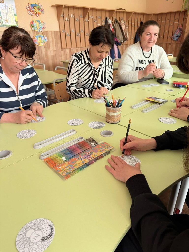 «Психосоціальна підтримка на робочому місці», семінар «Професійне вигорання: як відновлювати ресурс», воркшоп «Мистецтво тримати баланс». Опанування багатовимірної моделі стійкості BASIC Ph, психологічна гра «Колесо життєвого балансу для педагога», використання «Аптечки психологічної допомоги». Психологічний тренінг «Сила тих, хто поруч» — створення безпечного простору для обміну переживаннями. Творча зустріч «Творча сила тилу: Родинне коло» для вихованців та їхніх сімей.